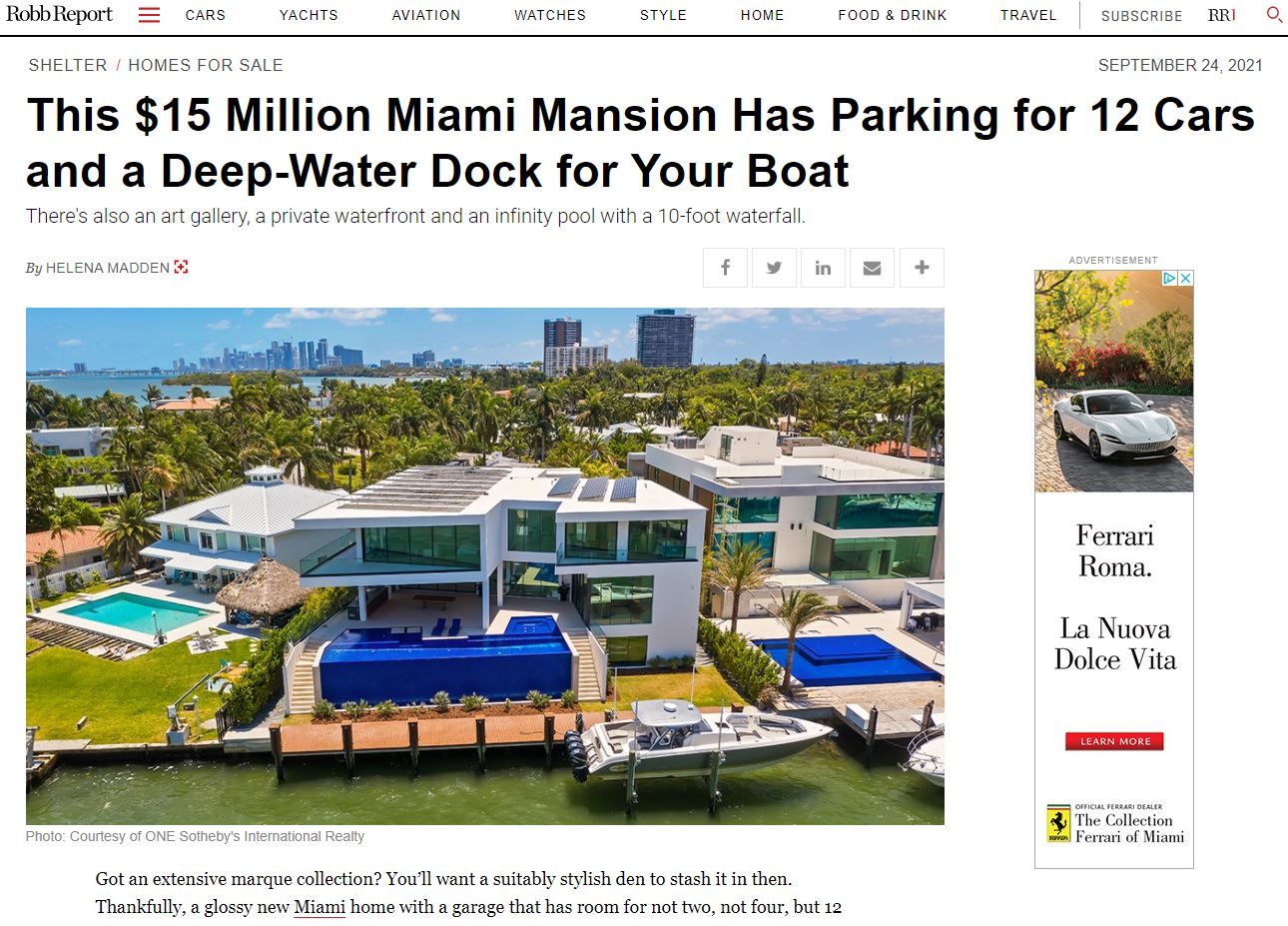 $15 Million Miami Mansion Has Parking for 12 Cars and a Deep-Water Dock for Your Boat
